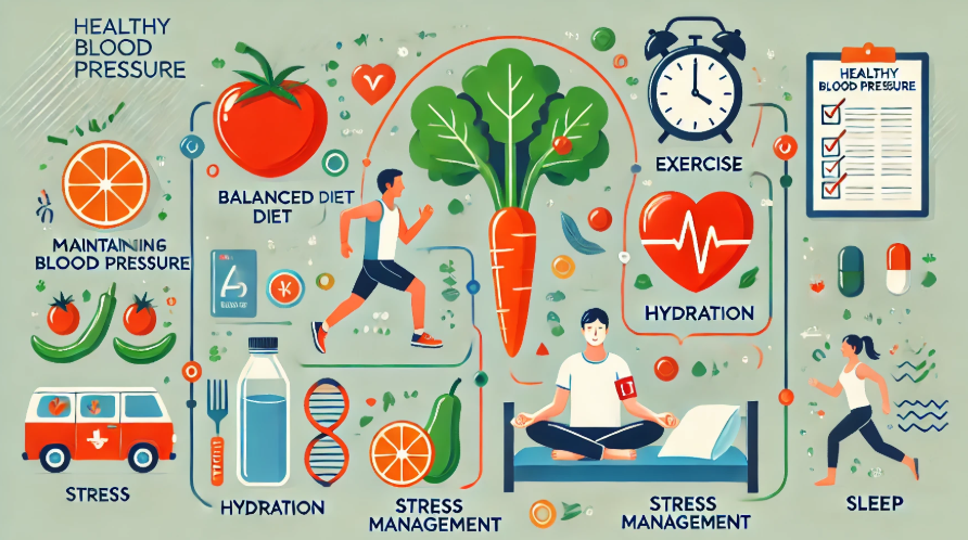 혈압을 정상적으로 유지하기 위해서는 균형 잡힌 식사, 규칙적인 운동, 스트레스 관리, 금연 및 절주, 충분한 수면 등 다양한 요소가 필요합니다. 각 요소별로 구체적인 방법을 살펴보겠습니다.